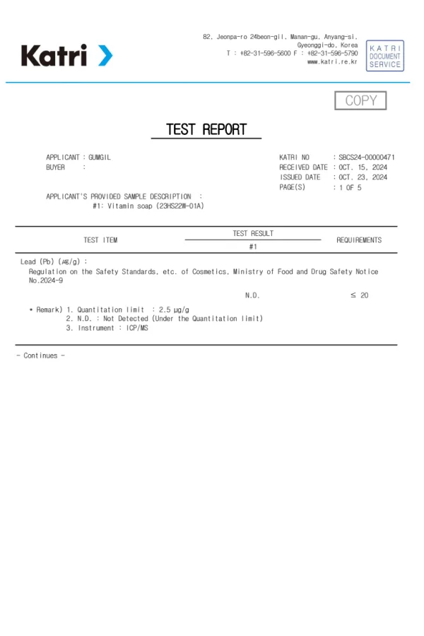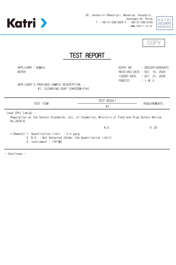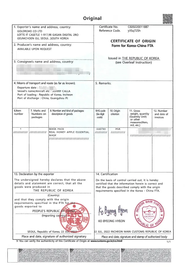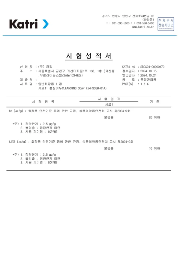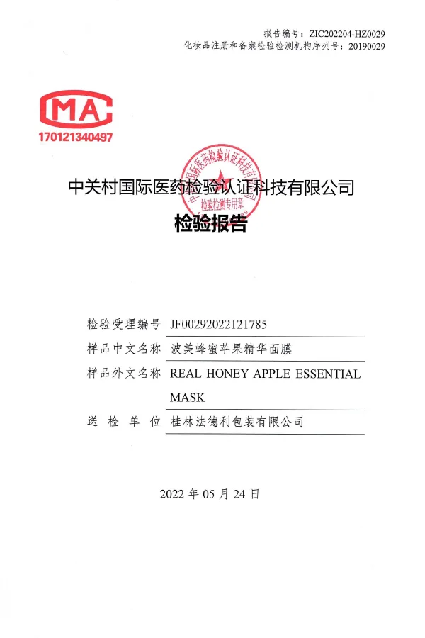 마스크팩 중국성적서